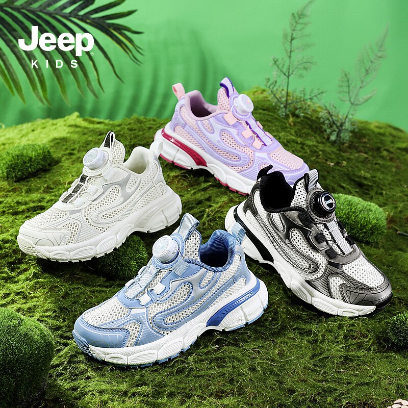 Jeep Детская обувь, новинка 2023, дышащие сетчатые кроссовки для мальчиков с вращающейся кнопкой